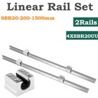 2Pcs SBR20 L200-4000mm Linear Rail Guide Shaft Rod & 4Pcs SBR20UU Block Bearing
