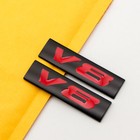 2Pcs Black & Red Car Trunk Lid V8 Engine Emblem Metal Turbo Sports Badge Sticker