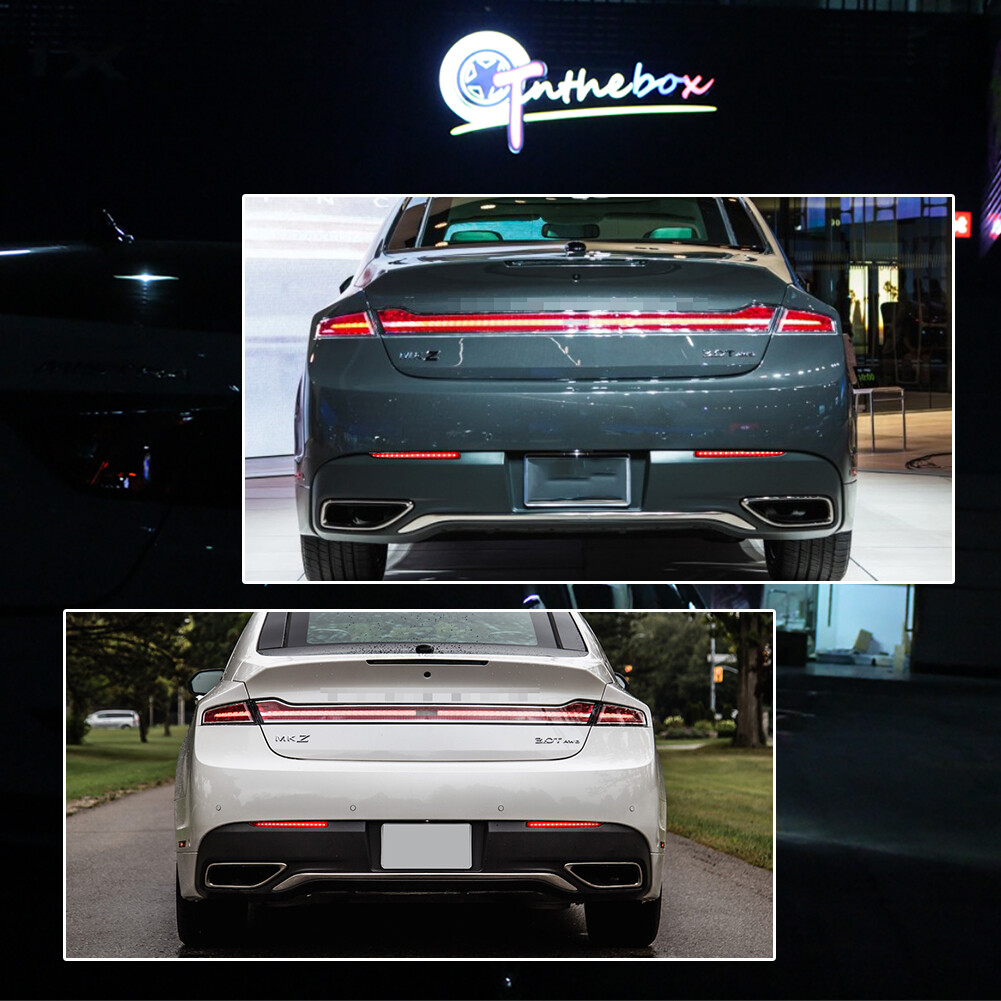 This page features a set of OE-spec LH & RH red lens Red LED rear bumper reflectors lights w/ Sequential signal light models made to fit for 2013-2020 Lincoln MKZ