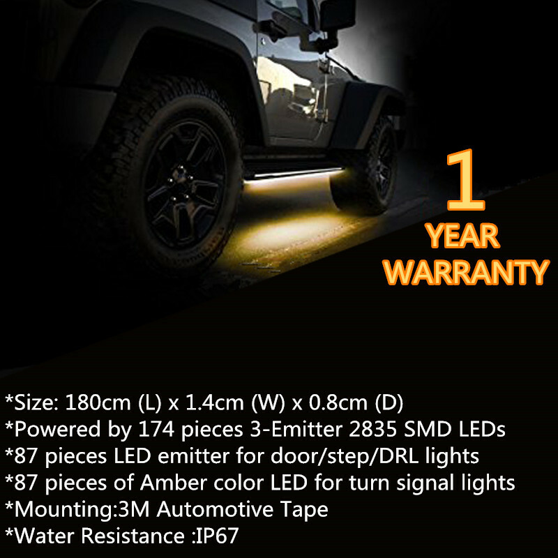 Get more than just basic lighting for your runnning boards.Step into your vehicle with style,including white color for DRL and amber color for turn signal.Never miss your step with Caracal runing board light. Perfect to serve as Parking Light / Daytime Running Light (DRL) / Step Light / Door Light / Pedal Light.