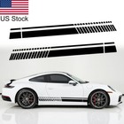 2pcs Black Sport Racing Stripe Graphic Side Body Door Skirt Vinyl Decals Sticker