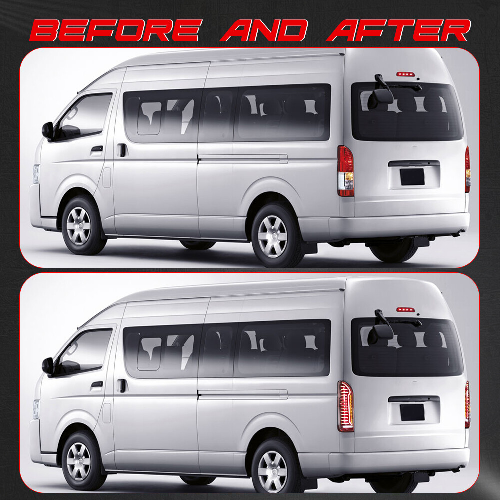 2pcs Dynamic LED Rear Tail Light Lamp For Toyota Hiace Commuter Van 2005-2018