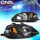 FOR HONDA CIVIC 1999-2000 EK JDM TYPE-R LOOK BLACK HOUSING AMBER HEADLIGHTS