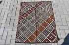 Vintage Turkish Small Rug 2,2x4,2 ft, Brown Blue Oriental Wool Rug
