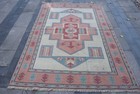 Vintage Rug, Area 5,1x7,3 ft Turkish Rug, Red Blue Floral Wool Rug