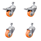 3 Inch 316SS Orange Polyurethane Wheel Swivel 10mm Threaded Stem Caster Set