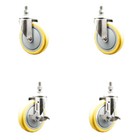 5 Inch 316SS Yellow Polyurethane Swivel ½ Inch Threaded Stem Caster Set 2 Brakes