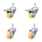 3 Inch Yellow Polyurethane Swivel 10mm Stem Caster Set 2 Total Lock Brake SCC