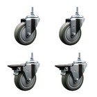 4 Inch Gray Polyurethane 12MM Threaded Stem Caster Set 2 Brakes SCC