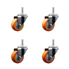 4 Inch Orange Poly Wheel Swivel 3/4 Inch Threaded Stem Caster Set Service Caster