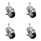 3 Inch SS Black Polyurethane Swivel 10mm Threaded Stem Caster Set Brake SCC