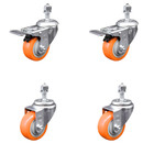 3 Inch SS Orange Polyurethane Swivel 10mm Threaded Stem Caster Set 2 Brake SCC