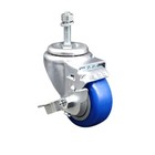 3 Inch SS Blue Polyurethane Swivel 10mm Threaded Stem Caster with Brake SCC