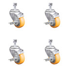 3.5 Inch SS Yellow Polyurethane Swivel 12mm Threaded Stem Caster Set Brake SCC