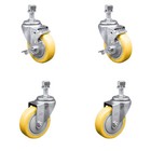 4 Inch Yellow Polyurethane Wheel Swivel 12mm Threaded Stem Caster Set 2 Brakes