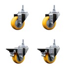 3 Inch Yellow Polyurethane Swivel 12mm Threaded Stem Caster Set with Brake SCC