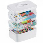 3-Layer Plastic Craft Organizers and Storage Box with Removable Trays, Storag...