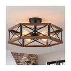 3-Light Wood Semi Flush Mount Ceiling Light Fixture Metal Rustic Ceiling Ligh...