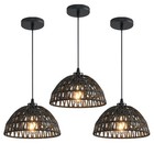 3 Pack Woven Pendant Light Fixtures,10.2" Black Rattan Pendant Lights Farmhou...