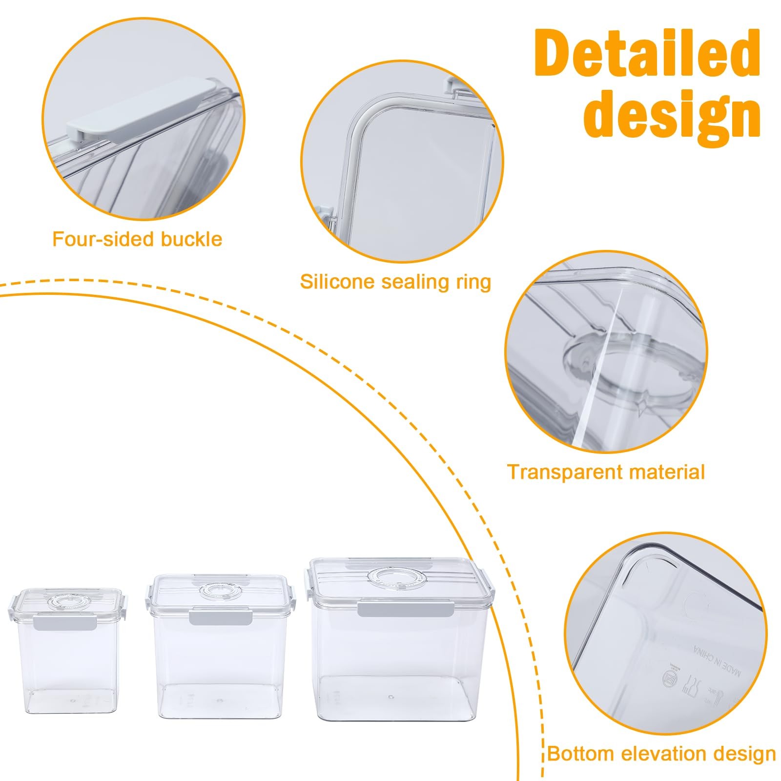 Easy-Access Wide Opening:Containers for cereal sets Designed with four-sided locking clips and a wide mouth for effortless scooping or pouring. These rice containers simplify kitchen tasks while maintaining a neat pantry.