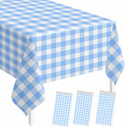 3 Pack Light Blue Gingham Tablecloth 54 X 108 Rectangular Plastic Table Cover Di