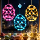 3Pack Easter Window Lights Decorations with Timer, Battery Powered Hanging Pi...