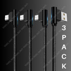 3Pack 90 Degree Right Angle Micro USB Cable Charger Cord 3/6/10FT For Samsung LG