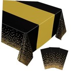 3 Pack Plastic Tablecloth, 54 inch x108 inch Rectangular Black and Gold