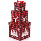 3 Pcs Christmas Nesting Gift Boxes Buffalo Plaid Xmas Stackable Boxes Checkered