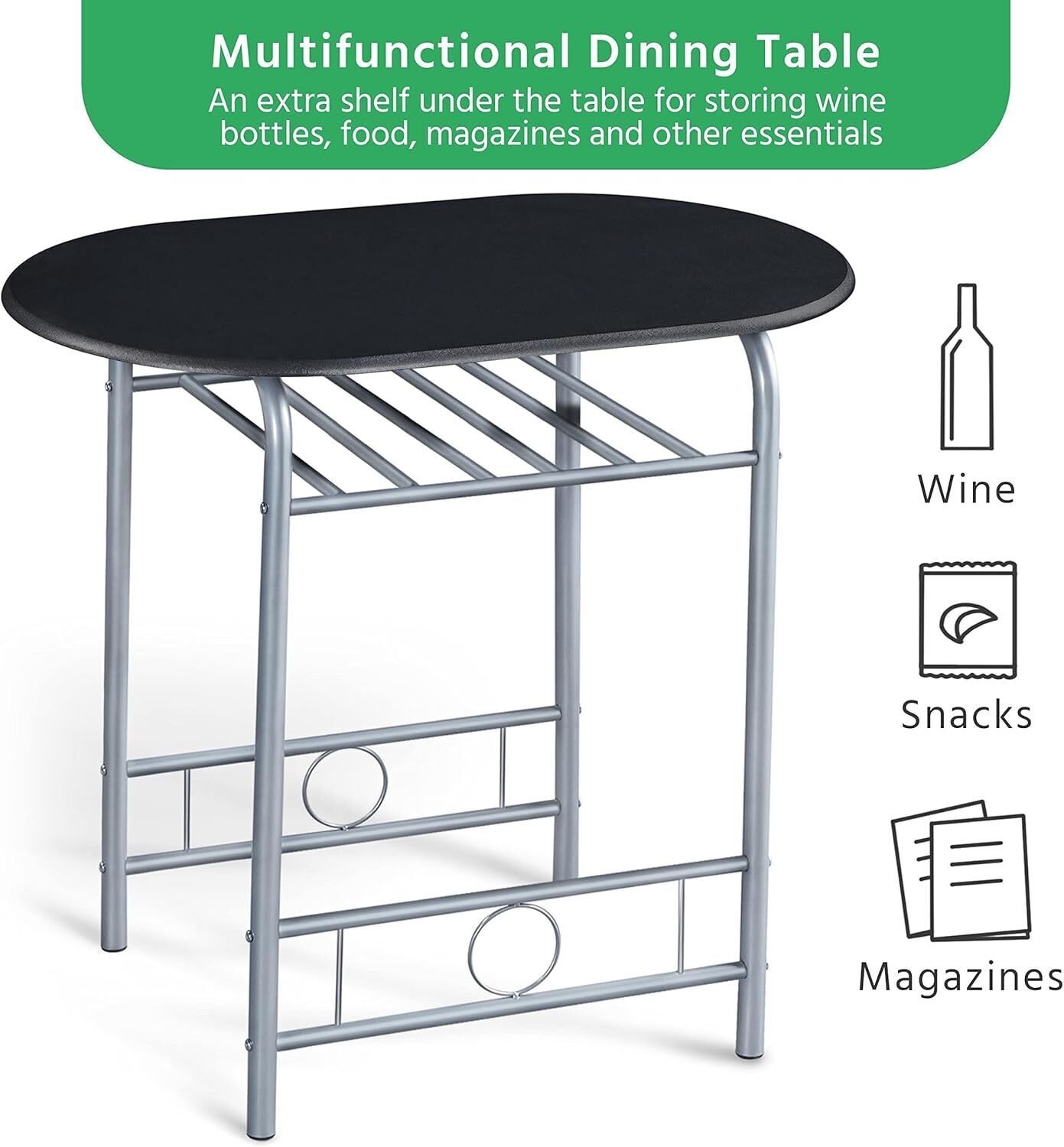 Compact Size: Measuring 31.5 inch L x 21 inch W, the compact oval tabletop allows one or two people to dine, work, study, play cards or chat as wanted. The lightweight design makes this set easy to move around for your changing needs. It can perfectly fit into a small kitchen, dorm room, apartment or a corner of your house to create a cozy dining area or relaxing place.