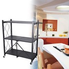 3-Tier Foldable Metal Rolling Trolley Cart Utility Rack Storage Shelves Holder
