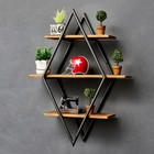 Diamond 3-tier Floating Shelves Metal Wall Shelf Unit Wood Display Storage Rack