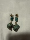 VTG Natural Genuin Green Teal Golden Dyed Sea Snail Shell Faux Earrings
