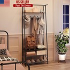 Metal Hall Tree Entryway Coat Rack Shoe Storage Bench 9 Hooks Organizer 73 Inch