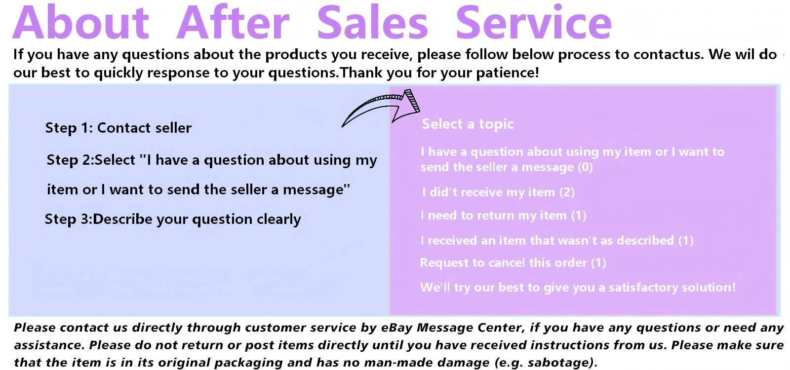 It would be highly appreciated if you might contact us first if you have any problems concerning the items. And you can expect all the issues would be resolved ASAP!