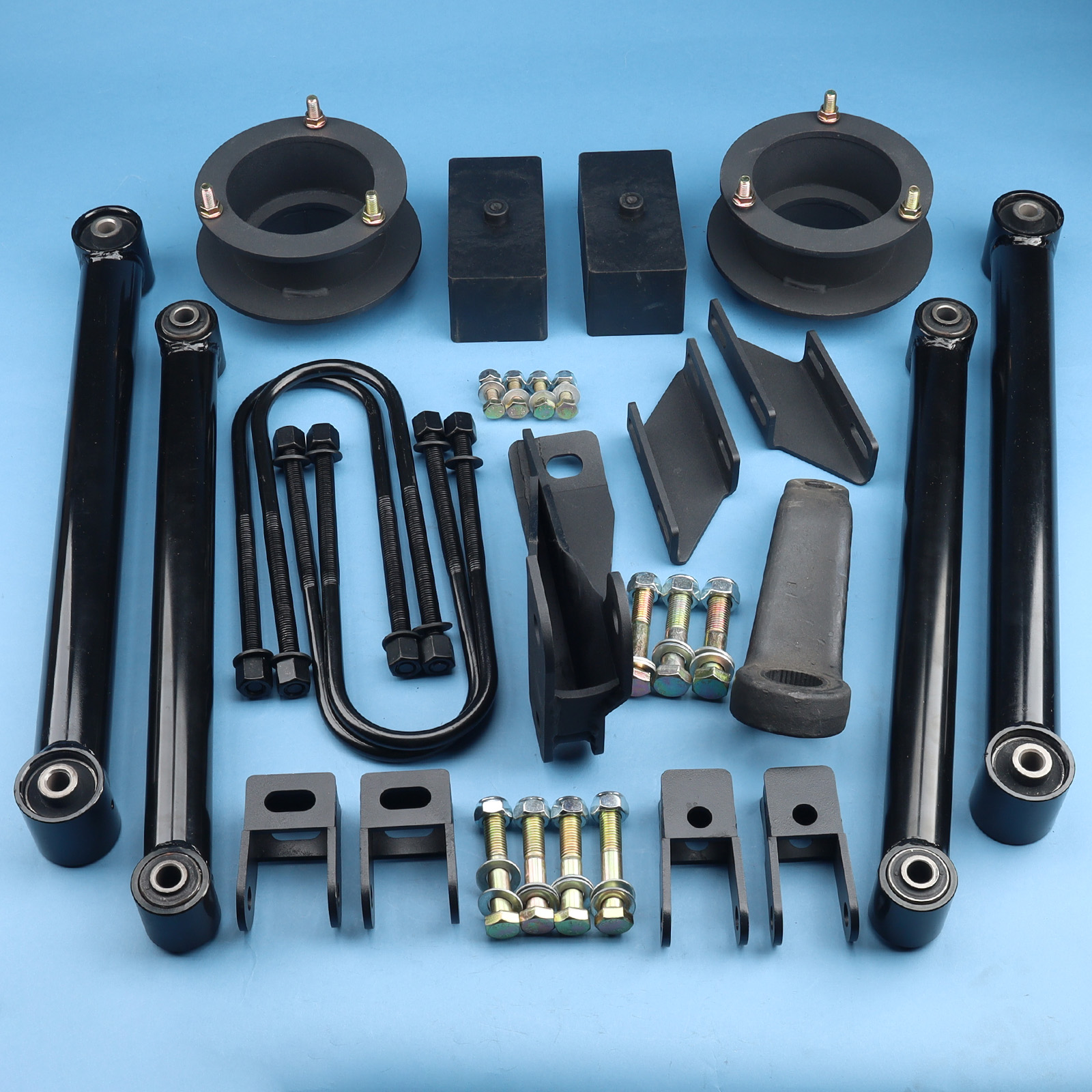 Rear block kit will put a slight rake back in your vehicle for hauling or towing or lifting. Featuring 100% bolt-on installation and a unique design that allows fitment without problems. The kit will not affect your factory OEM ride quality or comfort level.
