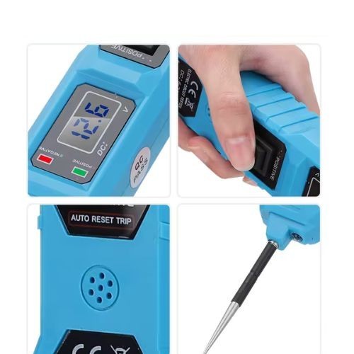 Instant Polarity Test: Touch probe to any contact, Red LED = Positive (+), Green LED = Negative (-), no button press needed