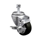 3.5 Inch SS Black Polyurethane Swivel 12mm Threaded Stem Caster with Brake