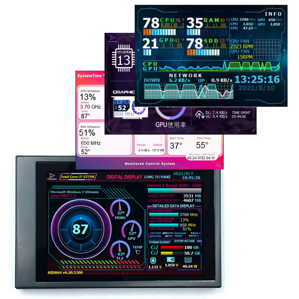 Aida64 is compatible with Wins system, and lcd4linux software package (supporting 32-bit and 64 bit) can be compatible with Linux. (it can be used in Wins system, Qunhui NAS, openwrt router, raspberry pie and other Linux systems).