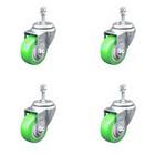 3.5 Inch SS Green Polyurethane Wheel Swivel ½ Inch Threaded Stem Caster Set SCC