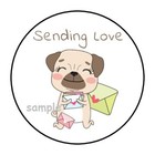 30 CUTE SENDING LOVE PUPPY ENVELOPE SEALS LABELS STICKERS 1.5" ROUND DOG LOVE
