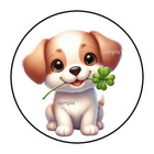 30 CUTE ST PATRICKS DAY PUPPY ENVELOPE SEALS STICKERS LABELS 1.5" ROUND CLOVER