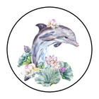 30 WATERCOLOR FLORAL DOLPHIN ENVELOPE SEALS LABELS STICKERS 1.5" ROUND OCEAN