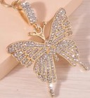 2Pcs Rhinestone Gold Butterfly Keychain