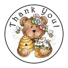 30 THANK YOU BEAR BEE FLOWERS FAVOR 1.5 INCH LABELS ROUND STICKERS