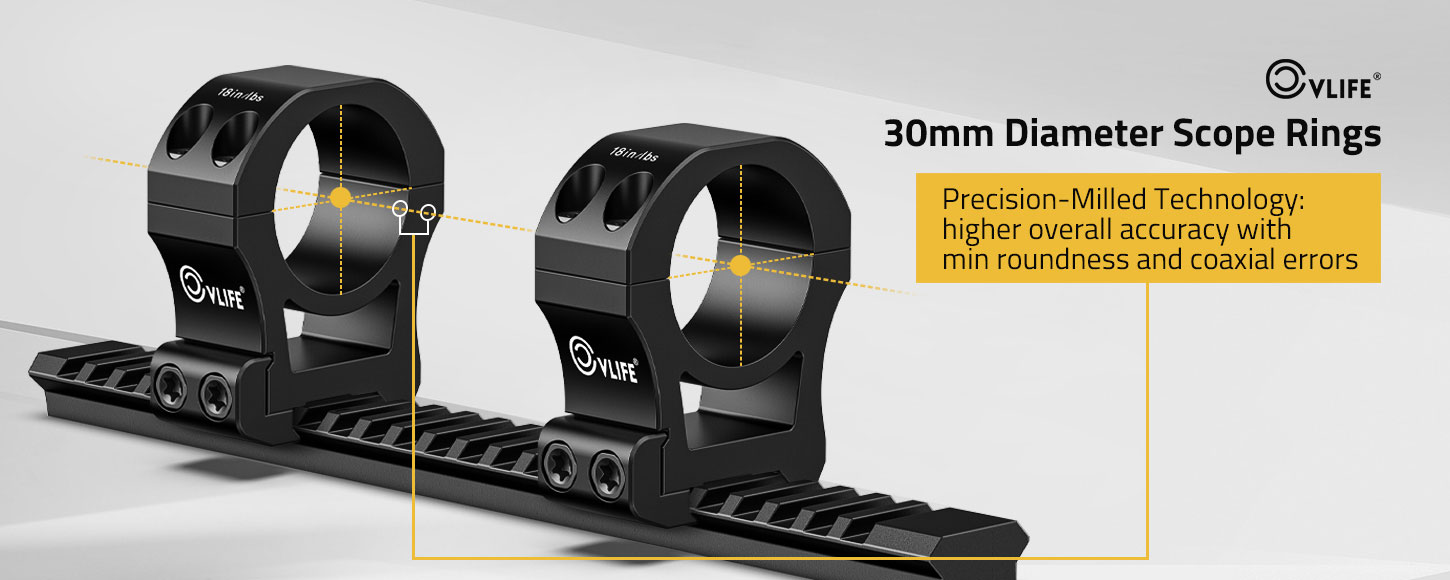 Solid High Scope Ring: 30 mm diameter scope rings with 1.26 inch ring center height are compatible with Picatinny rails and more. Made from aircraft-grade 6061-T6 aluminum alloy and CNC machined ensures precision