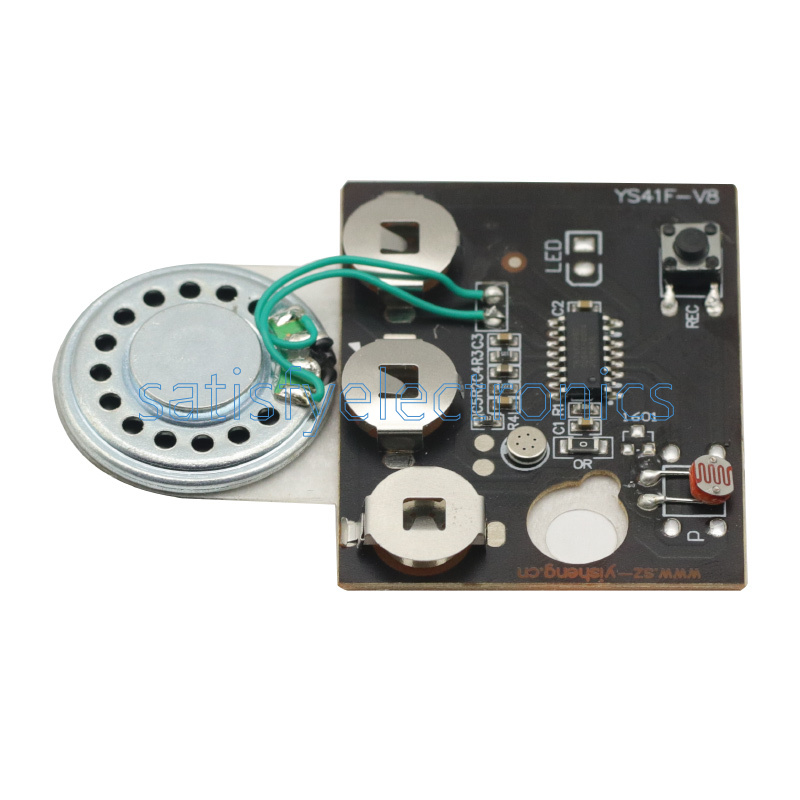 1. 30s sound recordable module, with speaker, microphone and button.