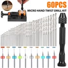 60Pcs Mini Micro Hand Drill Bits Set Small Manual Keyless Chuck Pin Vise Rotary