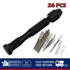 26 Pcs Mini Micro Drill Hand Bits Set Small Manual Keyless Chuck Pin Vise Rotary