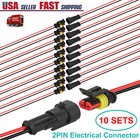 10-Pair Waterproof 12V 2-pin Electrical Wire Connector Plug Cable Boat Car truck